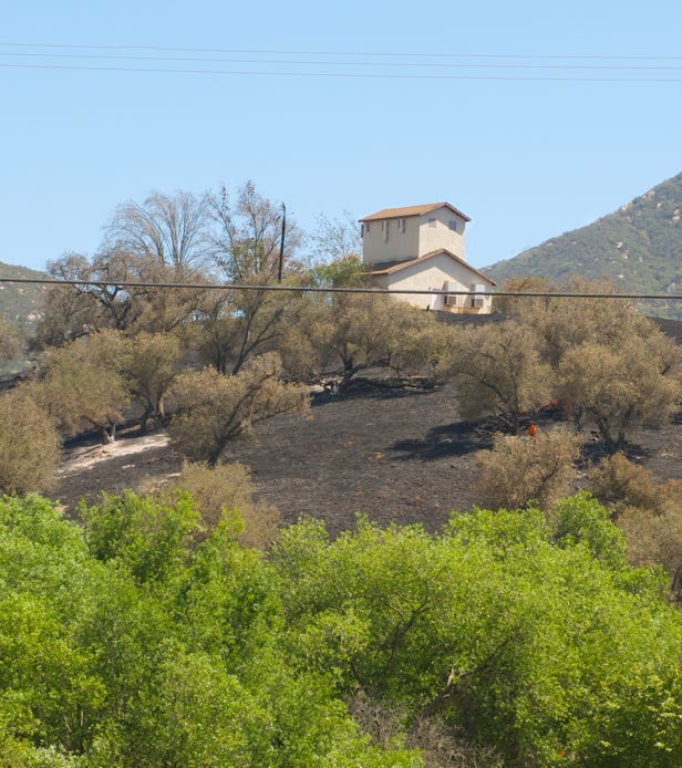Remains of the Harmony Grove Spiritualists Association after the Cocos Fire, 2014, 248 yards from HGV South